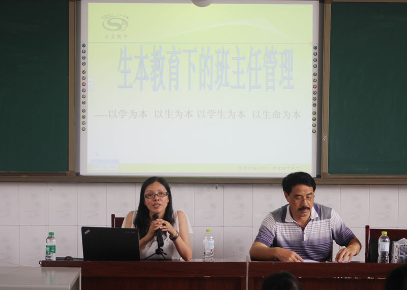 8月26日下午2:30,在教師培訓(xùn)會(huì)上,學(xué)校請(qǐng)來(lái)了張葵明老師為全校近200名教師傳經(jīng)送寶。張老師現(xiàn)為成都石室聯(lián)合中學(xué)初三年級(jí)主任,同時(shí)她也是成都市優(yōu)秀班主任、成都市十佳教師。