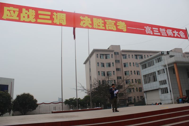 3月17日,我校全體師生齊聚旗臺廣場,舉行了以“應(yīng)戰(zhàn)三調(diào),決勝高考”為主題高2014屆高考80天誓師大會。