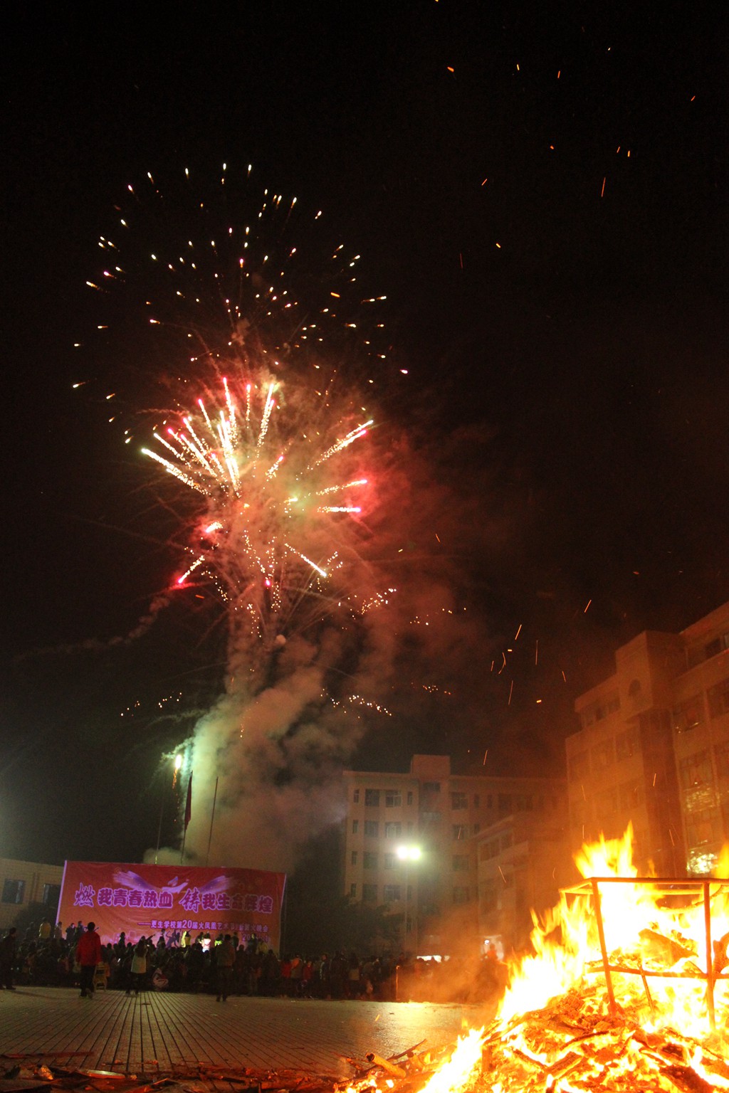 煙花絢爛辭舊歲,篝火熊熊迎新年。1月9日晚,更生學(xué)校2700多名師生歡聚一堂,隆重舉行“燃我青春熱血 鑄我生命輝煌”更生學(xué)校第20屆火鳳凰藝術(shù)節(jié)迎新篝火晚會,共同迎接嶄新的2015年。
